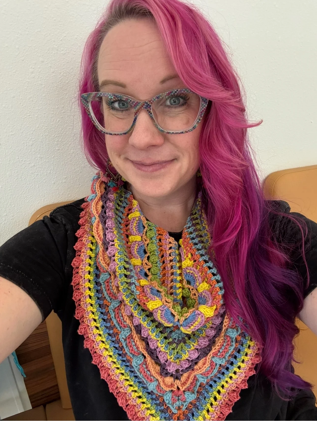 I’m all about good vibes, bright colors, and good conversation. I taught myself to crochet two years ago and fell in love. I love making anything funky granny square related.